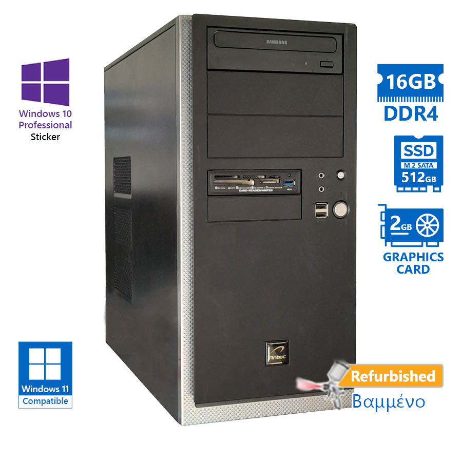 OEM Tower Xeon E-2124(4-Cores)/16GB DDR4/512GB M.2 SSD/Nvidia 2GB/DVD/10P Grade A+ Workstation Refer